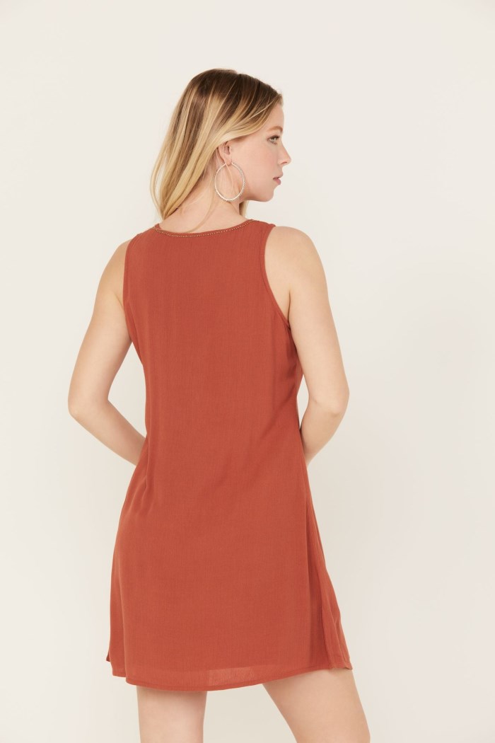 - Gold-toned studding along neckline