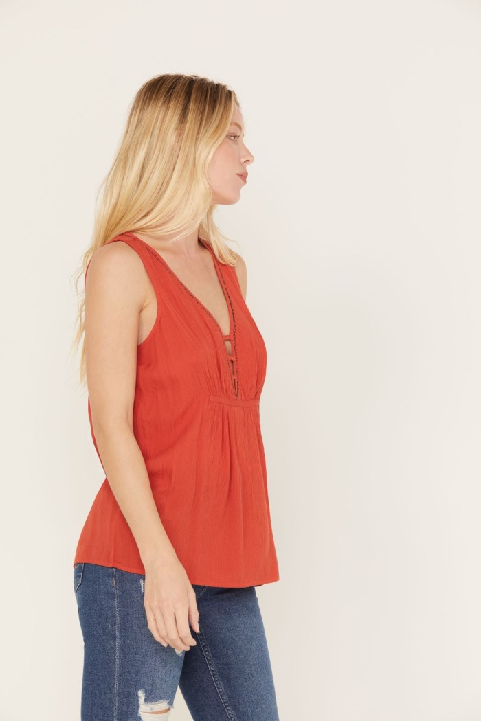- V-neckline with cut-out details