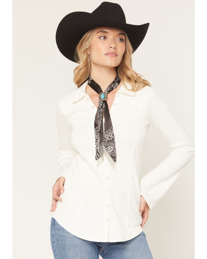 - Silver-toned concho accent with turquoise-toned stone center