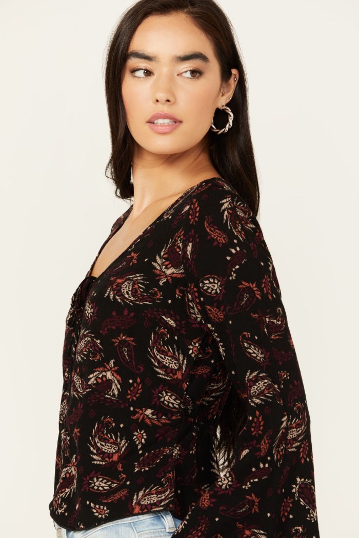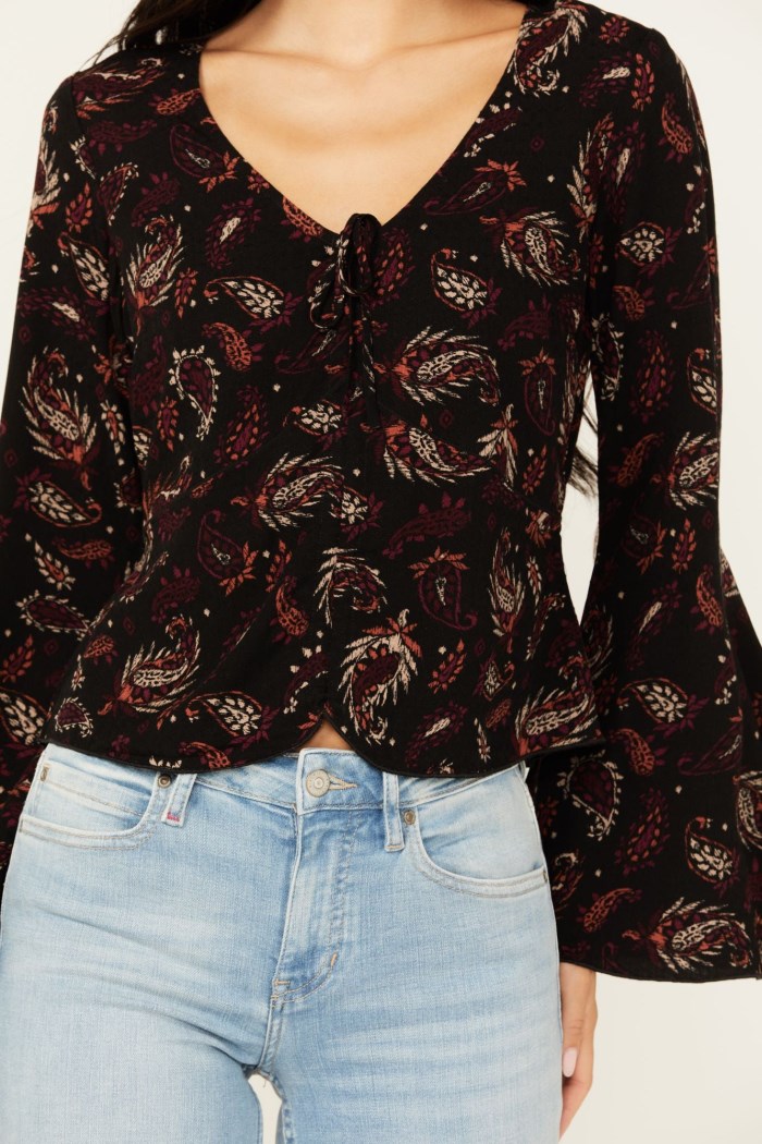 - Promotion Idyllwind Women's Hazel Smocked Long Sleeve Cropped Blouse | Black