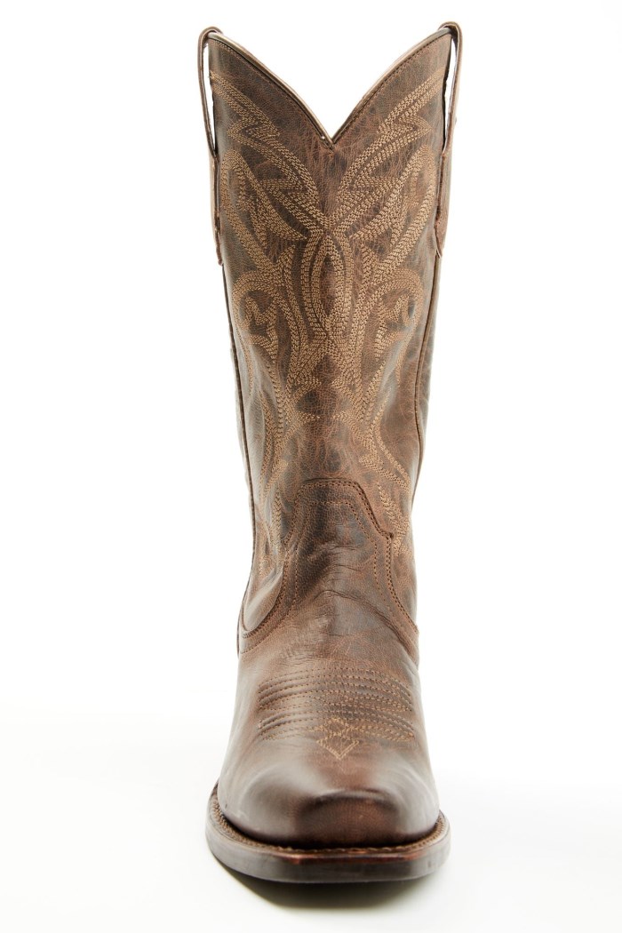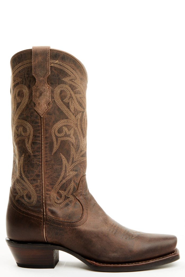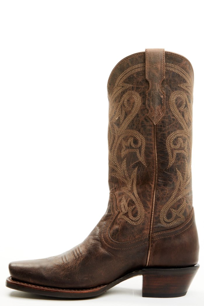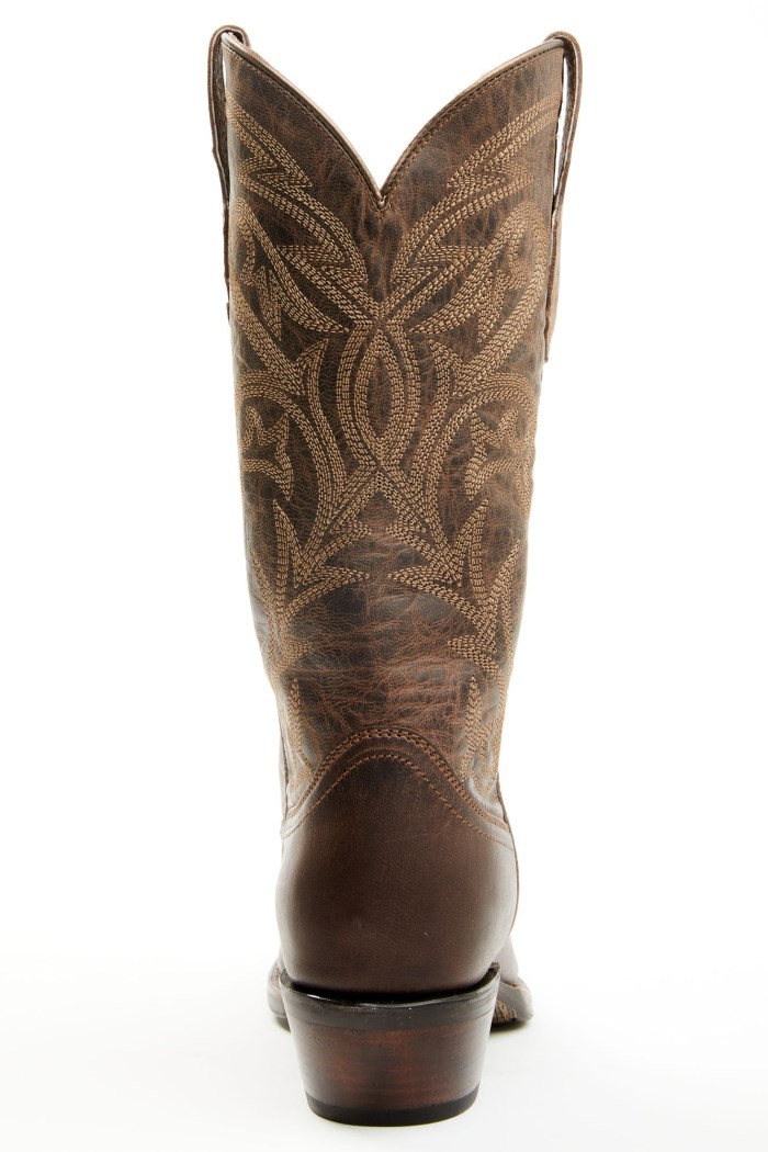 - Solid brown design with western stitching