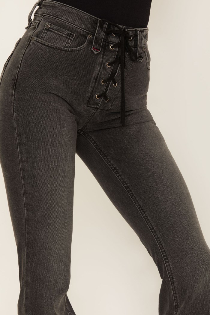 - Lace-up fly with security panel