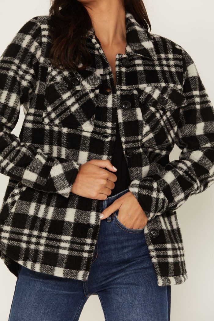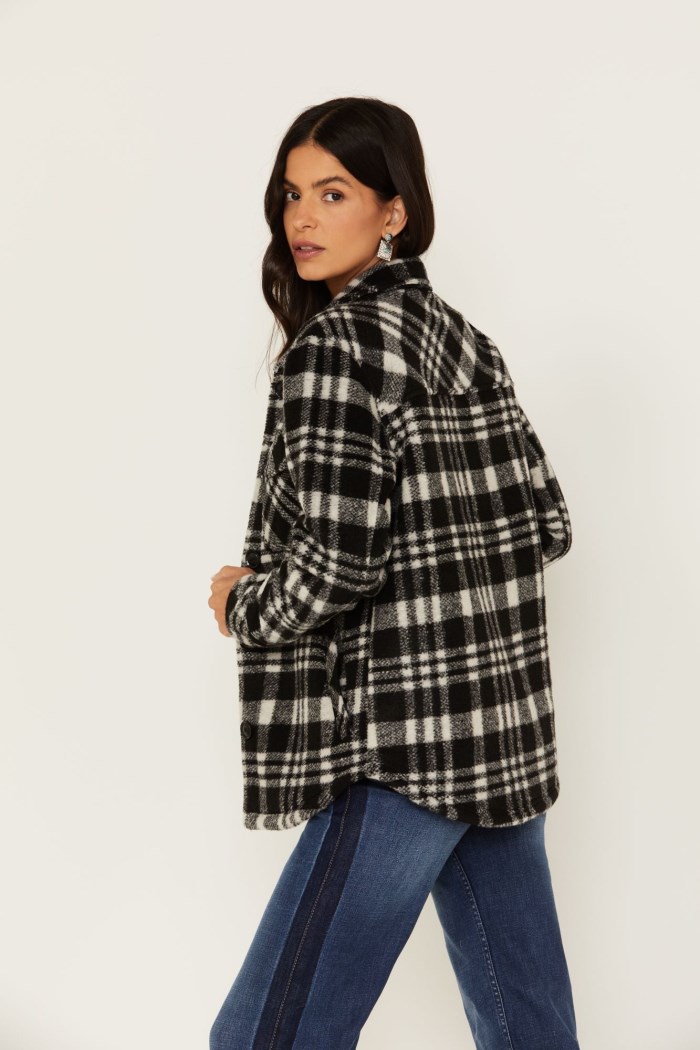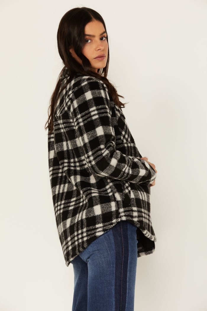 - Allover black and white plaid print