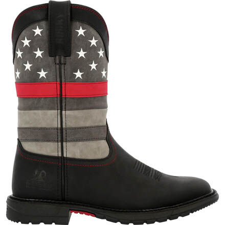 Want to show your support and give back to the Public Service Industry The Rocky Red Line Women's Western Boot was designed with the idea of comfort and giving back in mind. The eight-layer comfort system was created so each element and layer offers additional comfort, from the orthotic element to the outsole. When you wear these comfortable ladies' western boots, you can work, walk or stand all day.