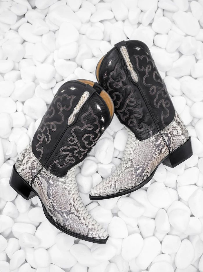 Take a walk on the wild side with the latest edition of our exotic collection. Mother Nature is a great designer and it shows oh so well in this snip-toe Python winner. Handsome shades of tobacco are wrapped tip to toe in this handsomely attractive presentation.