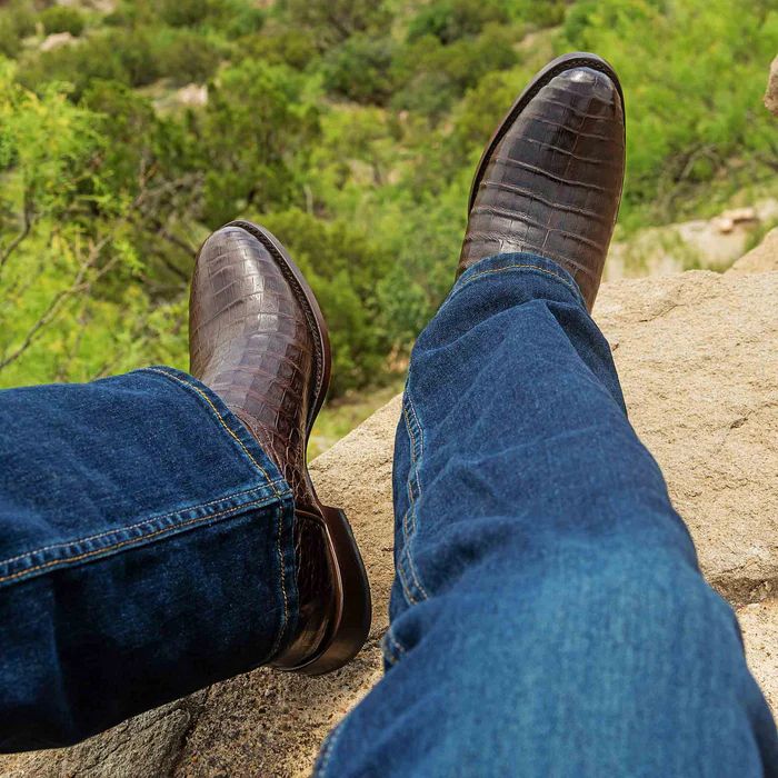 The Ranger is a roper-style boot wrapped in our opulent Caiman Belly and supple Caravan Calfskin leathers. With a shorter, 8-inch shaft and roper heel, The Ranger goes all in on comfort and refinement. These may be the penultimate example of exotic Ropers.