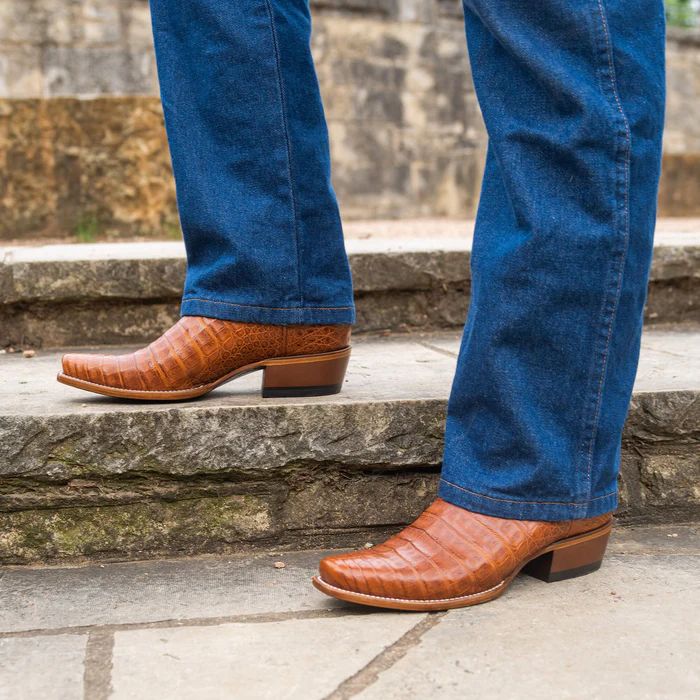 The Trace is a Western-style 7-toe Cowboy boot wrapped in RUJO's opulent Caiman Belly and coupled with a gorgeous hand-stitched Suede Nubuck shaft. With this John Wayne-esque look and feel, The Trace goes all in on this classic 7-Toe style.