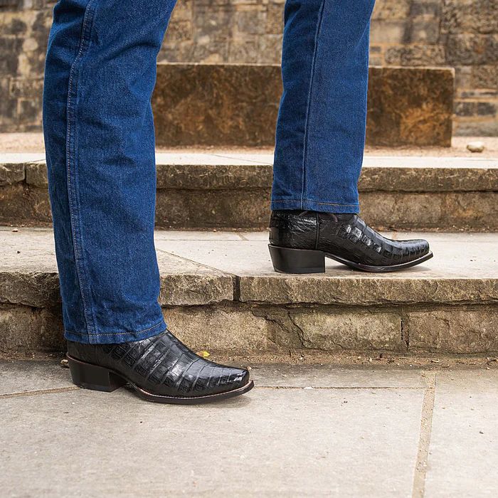 The Trace is a Western-style 7-toe Cowboy boot wrapped in RUJO's opulent Caiman Belly and coupled with a gorgeous hand-stitched Suede Nubuck shaft. With this John Wayne-esque look and feel, The Trace goes all in on this classic 7-Toe style.