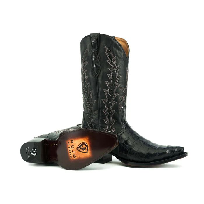 This little lady will be the center of attention. A gorgeous Caiman tail vamp is topped off with a stitched twelve inch calfskin shaft and highlighted with decorative studding. KELLI kicks things off with a snip toe in Midnight black or Chocolate brown choices. Every step is a statement!